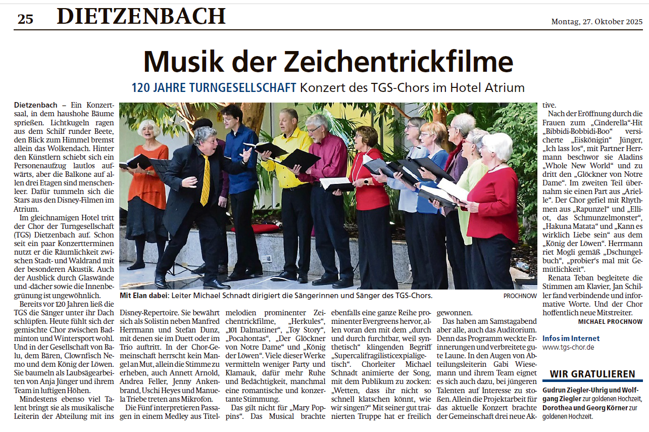 Der TGS-Chor Dietzenbach gibt am 25.10.2025 ein Konzert der besonderen Klasse.